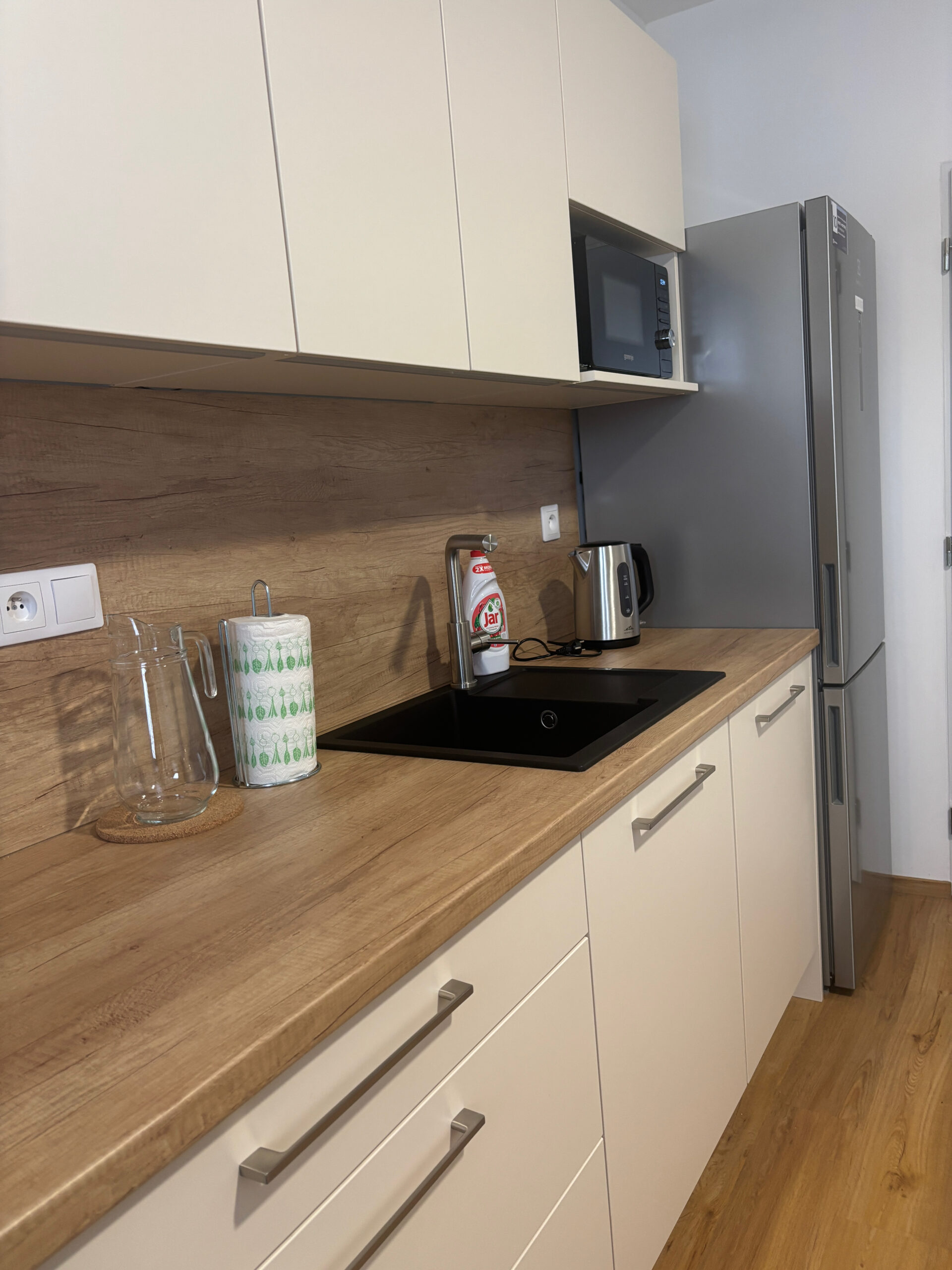Apartmán o výměře 60 m², určený pro pohodlný pobyt až 4 dospělých osob. Nabízí plně vybavenou kuchyni, koupelnu, obývací část s ložnicí, myčku nádobí. K apartmánu náleží také sklepní kóje umístěná hned za hlavními dveřmi, vybavená botníkem a věšáky.
